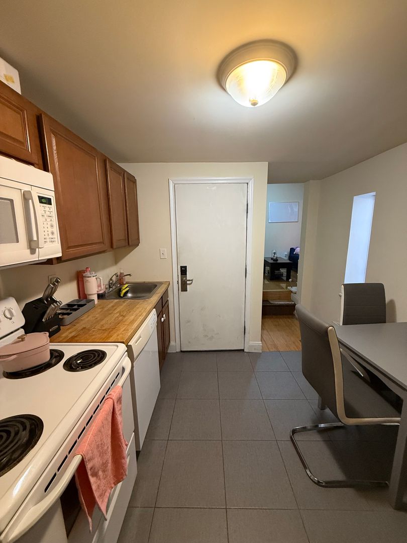 Cute and Modern 2nd fl fl 1 Bedroom Apt. right on Temple's Campus! H/W floors throughout, baseboard heating, and more. Modern Kitchen with nice counter top space and cabinet space, electric range, refrigerator, dishwasher and microwave. W/D in unit. Nice-sized bedroom with closet. Beautiful bathroom with walk-in shower! Nice windows with lots of natural light! Nice-sized living room. Cats and small quiet dogs (less than 25 lbs.) are OK with a non-refundable pet fee. First month, last month, and one month security deposit (so total 3 months) required at lease signing. 1 year lease minimum. $105 non-refundable application fee with two paystubs/some income verification and photo ID - we run a credit, criminal, income and eviction check. We look for 3x the rent for gross monthly income. Each resident over the age of 18 must submit a separate rental application. If approved, you will be charged a document preparation fee of $100.00. THIS FEE IS NON-REFUNDABLE. This is per LEASE not PER PERSON. No smoking. Available for August 2026! Lease will be an August to August schedule to follow school year. Tenant to supply their own AC units for air conditioning. Renters insurance is required. Co-signers welcomed! Off Campus Apartment near Temple - 1630 N Sydenham St - Unit 2. 1 bedrooms, 1 bathroom - All Utilities included, including High Speed Internet. Washer and Dryer in unit. Ideal for Temple students, conveniently located next to campus. For more info, please call/text Michael Giordano at 267-688-1449.